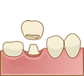 自分の歯を削り、それを土台にして人工の歯をかぶせる物をクラウンといいます。保険内治療の物ですと、金属にプラスチックを付けたものになりますので、強度が弱く、年数が経つと黄色く変色してしまいます。オールセラミッククラウンですと、金属アレルギーの心配がない他、自然で光透過率が高いので、見た目に大きく影響する前歯に適した材質のかぶせ物です。